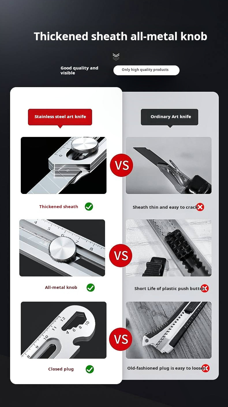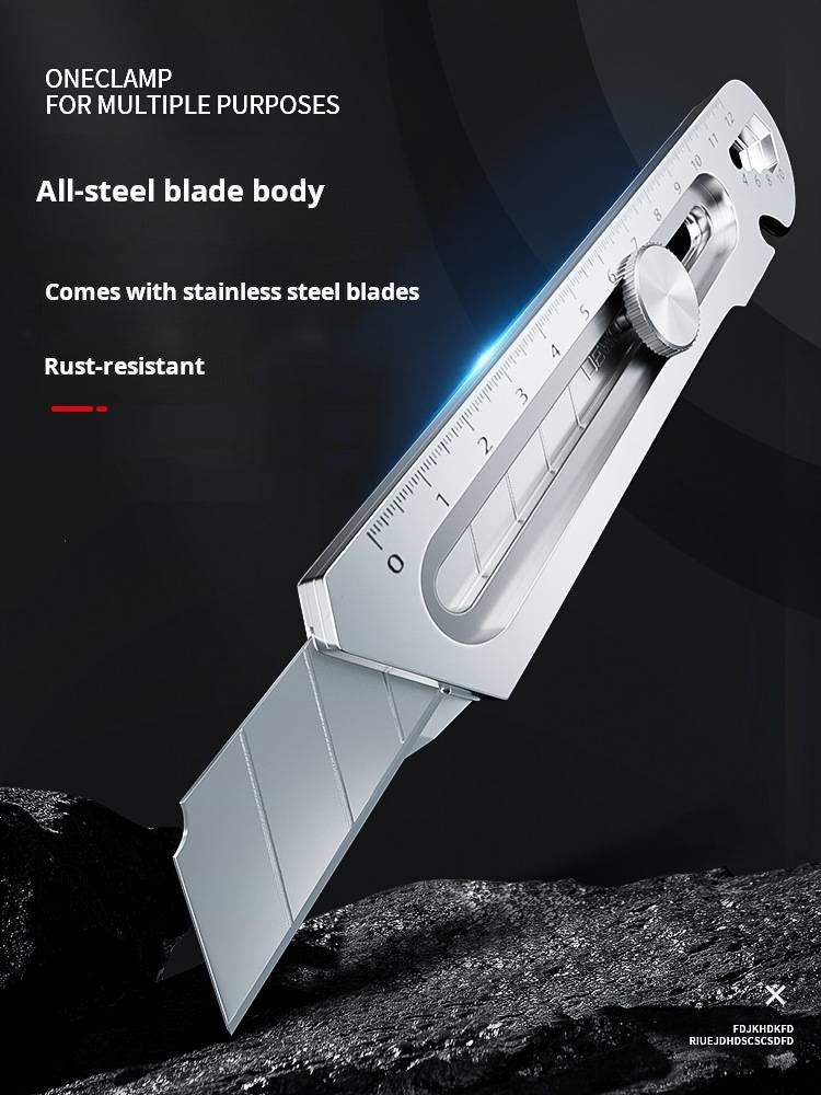 DURABLE AND ROBUST: Features a blade made of high-hardness SK5 alloy steel with an ergonomic 60-degree design for smooth, effortless cutting. Constructed entirely from aluminum alloy, it offers excellent durability and is your go-to tool for a variety of tasks.