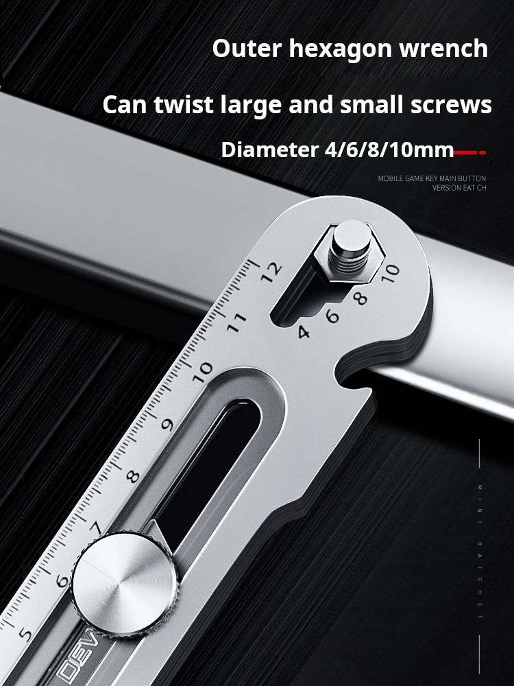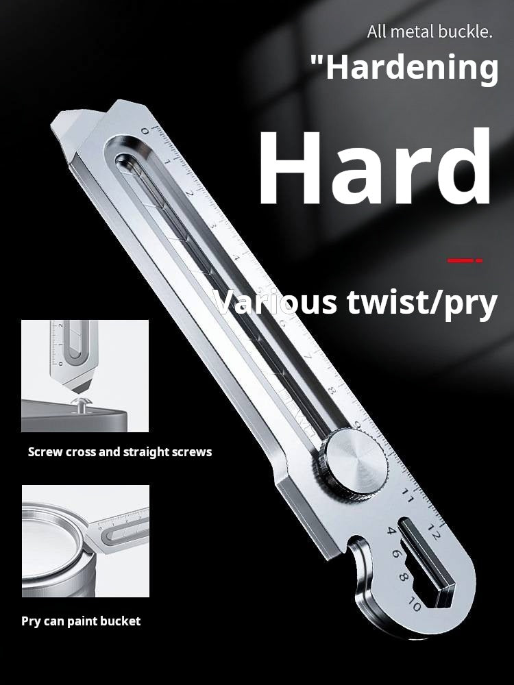 MULTIFUNCTIONAL AND VERSATILE TOOL: Combines several essential tools in one compact design, including a cleaning scraper, a utility knife, a wrench (8-13 mm), a bottle opener, and a ruler, simplifying your daily tasks with ease.